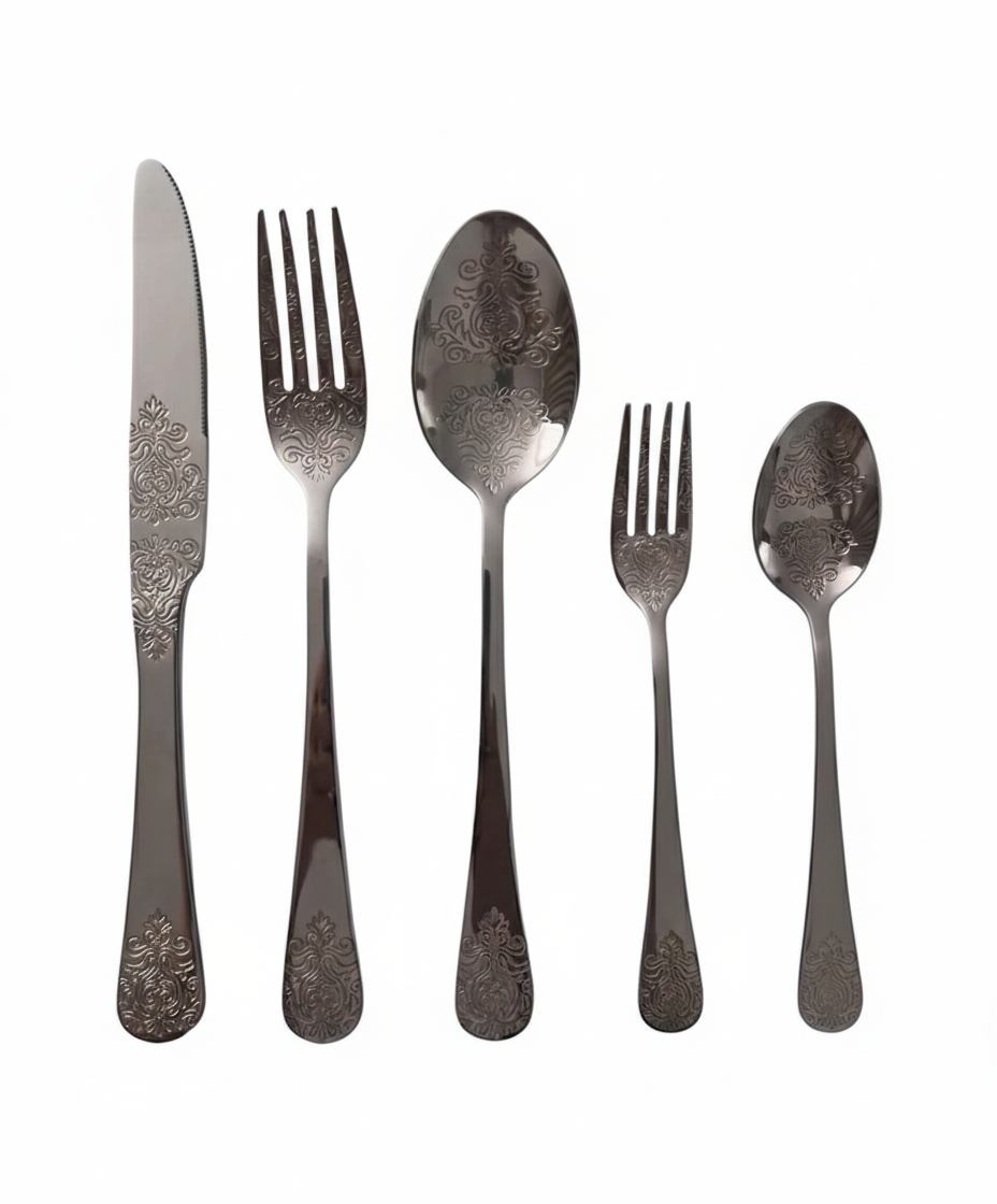 Breng glamour en klasse naar iedere maaltijd met deze stijlvolle zilveren bestekset.